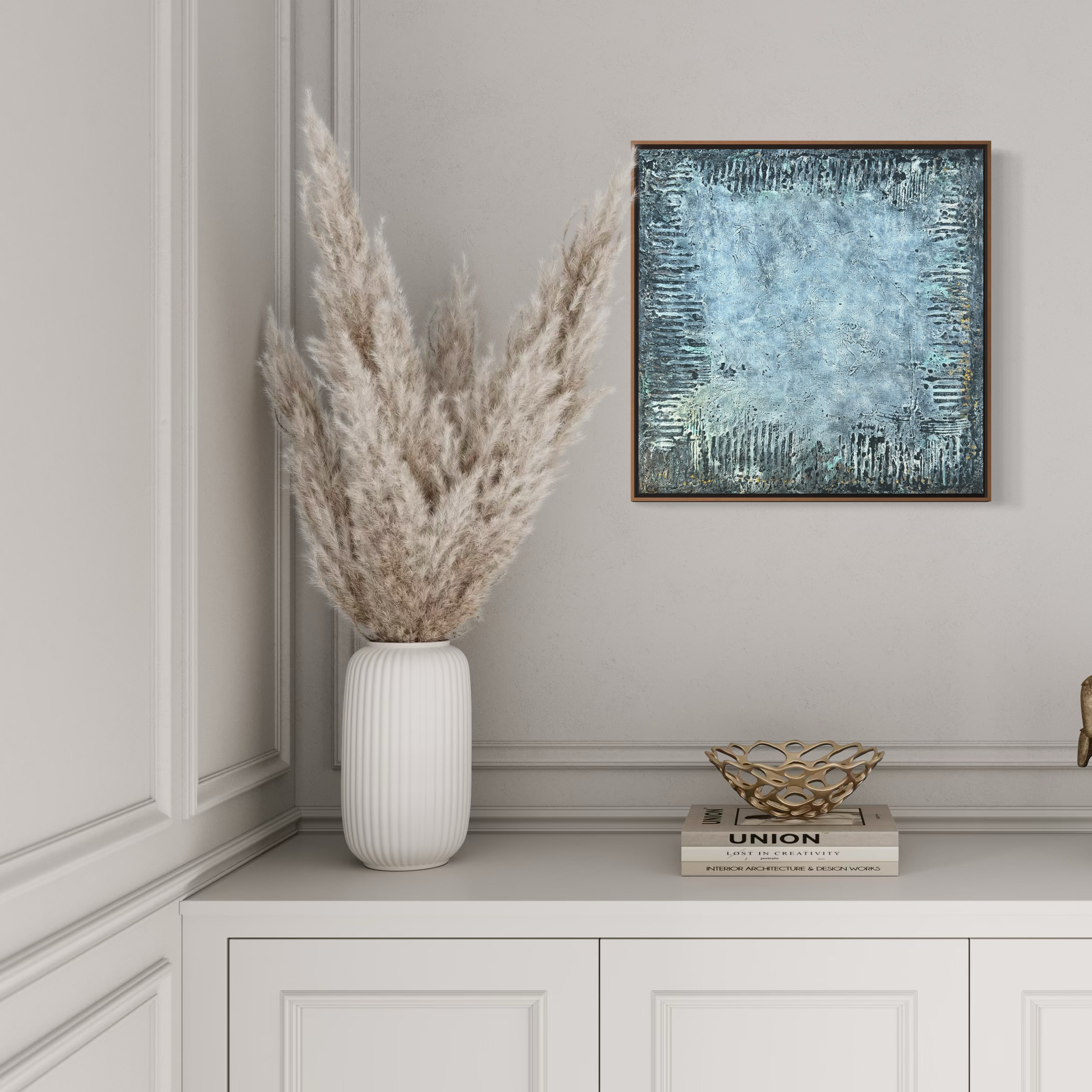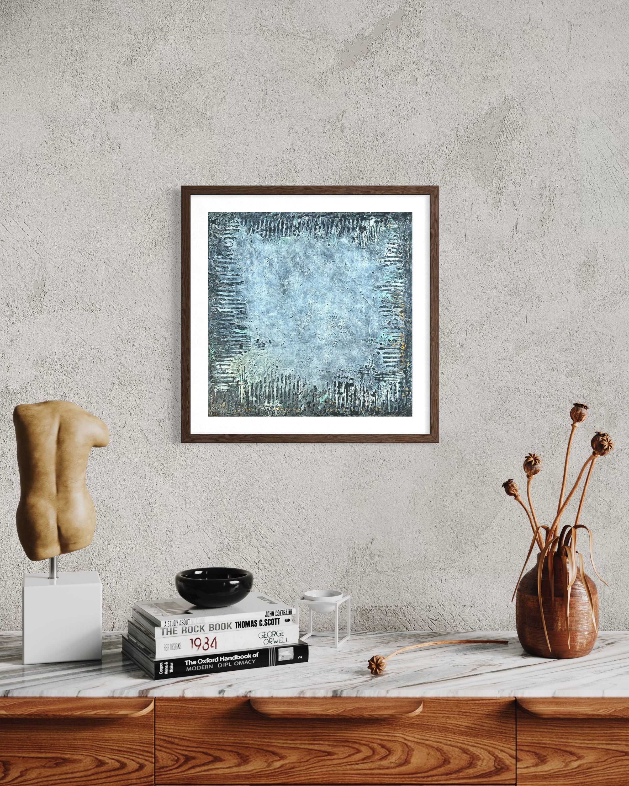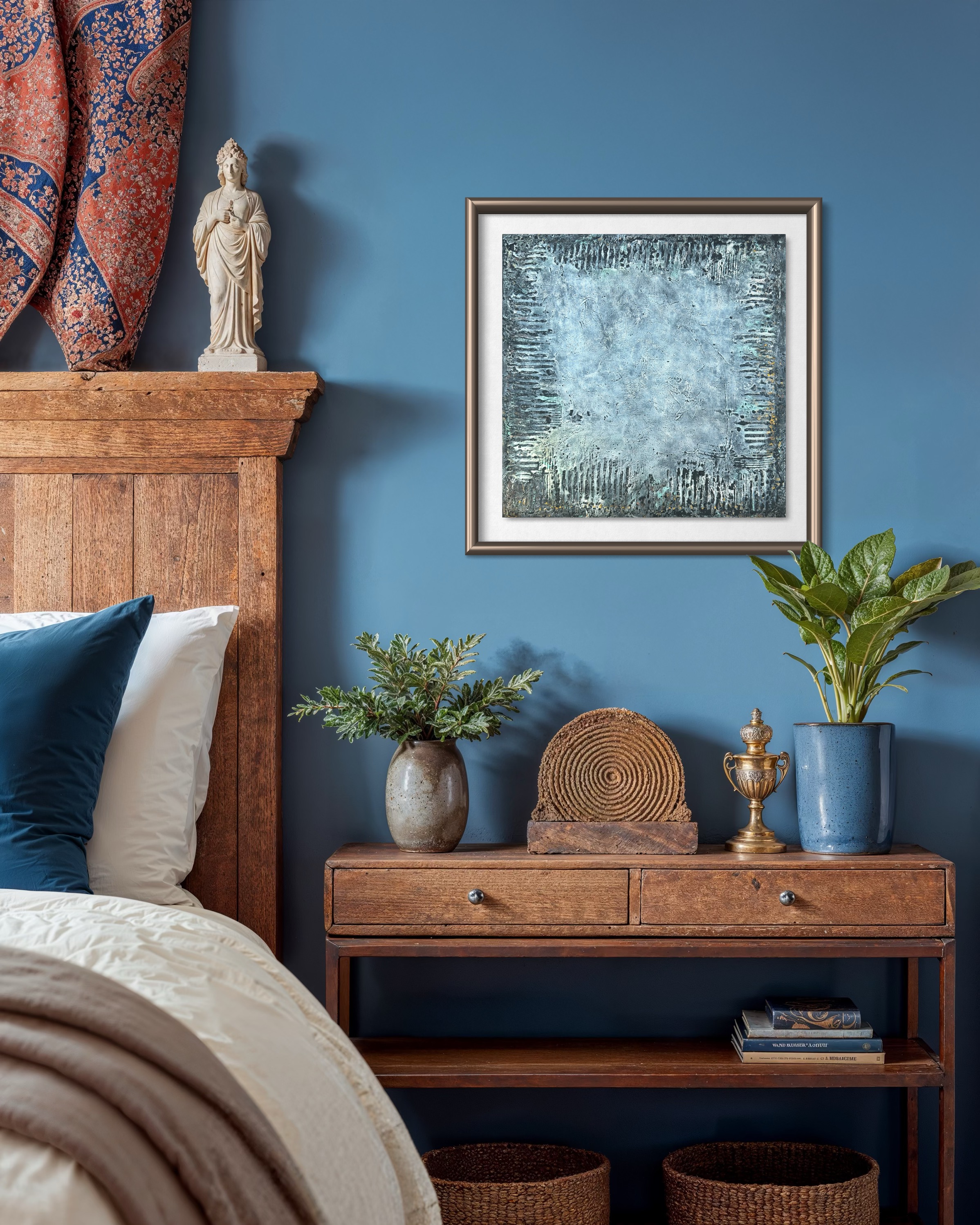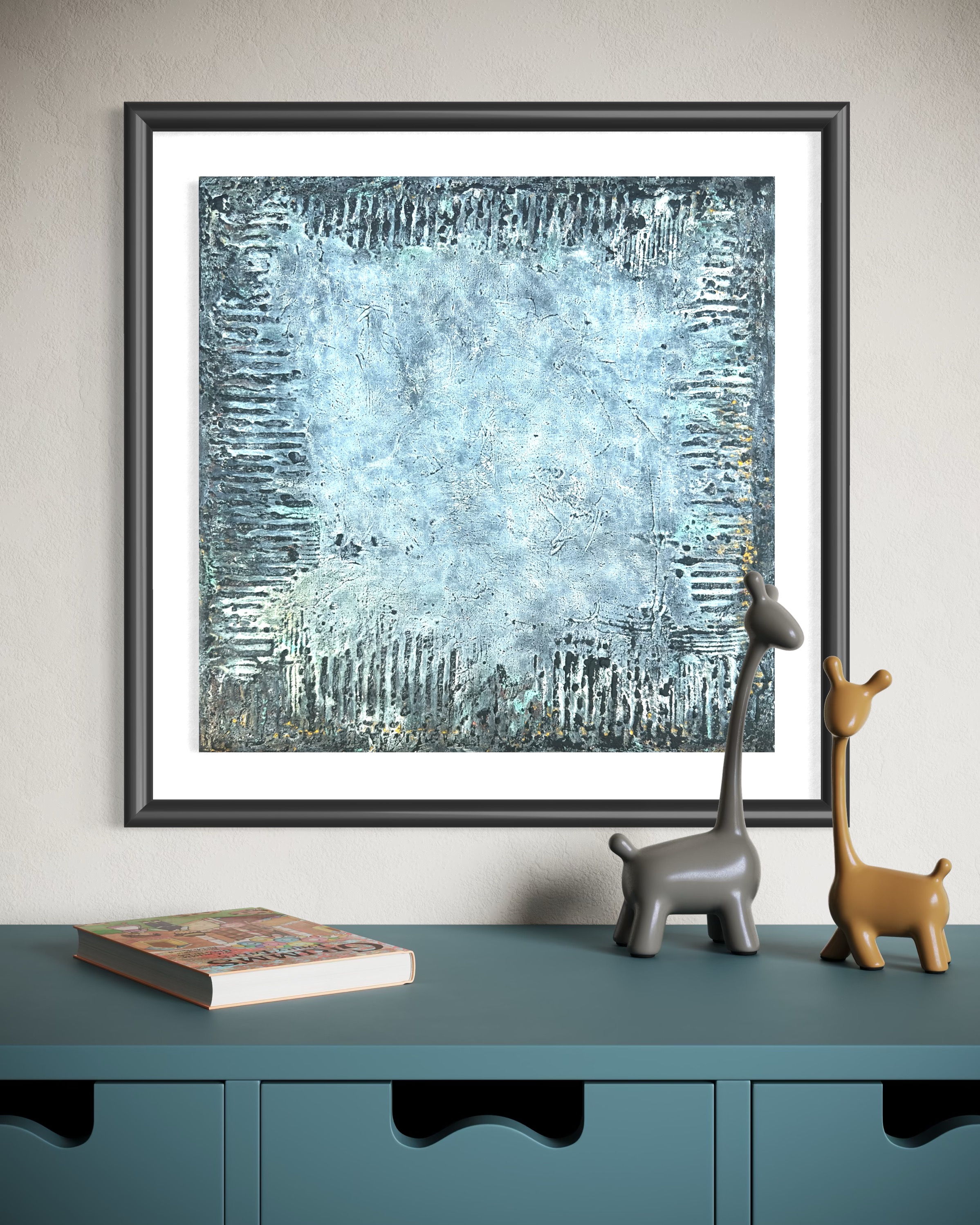 The work does not symbolize aging; it undergoes it. The blue-green oxidation emerges from actual chemical processes rather than applied pigment. Time acts as an active collaborator. Fine cracks spider across the surface, not as flaws, but as "involuntary honesty"—fissures where the buried warmth of the underlayer reasserts itself. The painting creates a foundation of trust: it does not pretend, it simply is what its making made it become.