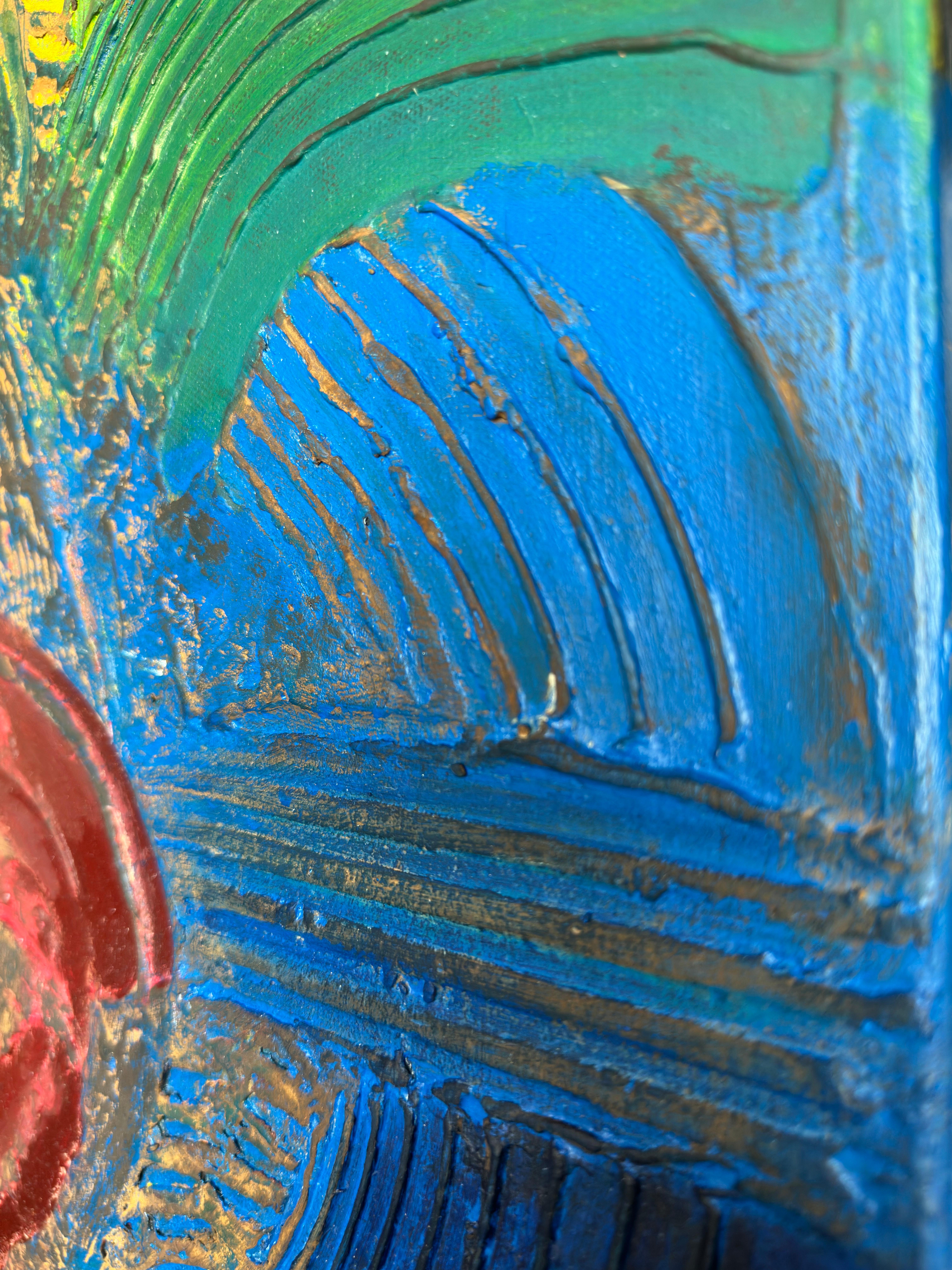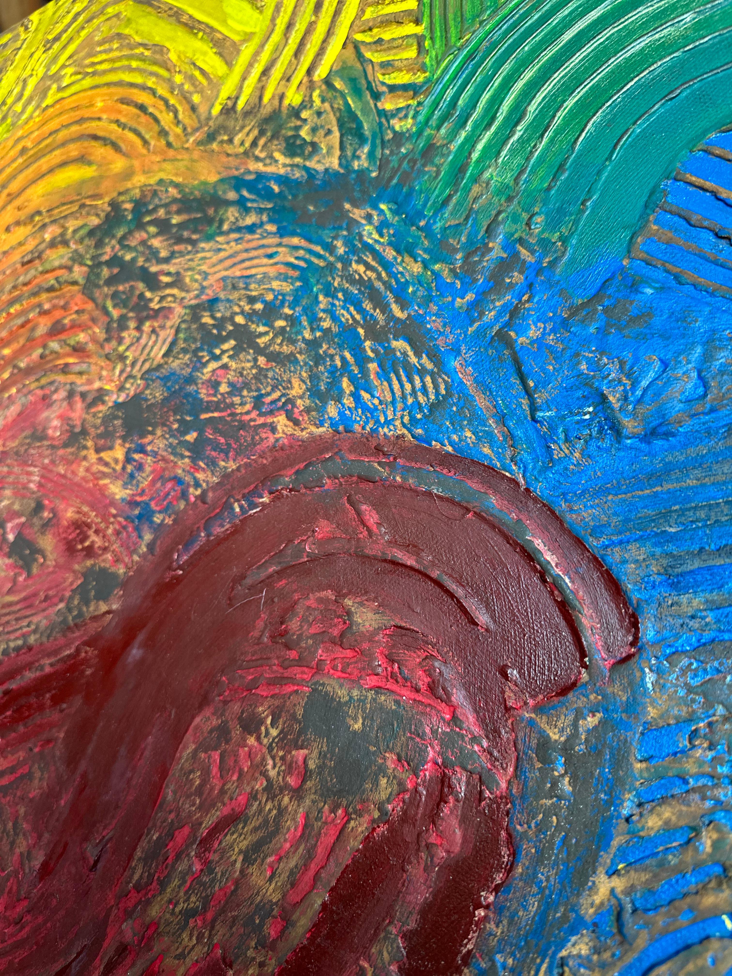 The rust on the peaks is the residue of reality—the inevitable corrosion that comes from existing in the world. The color in the valleys represents the inner values that retreat to survive. The six radiating color zones are not a grand political statement, but simply the fractured layers of a self trying to hold together. By refusing to finish the work and letting it age, the artist suggests that beauty is not in perfection, but in the complexity of holding on.