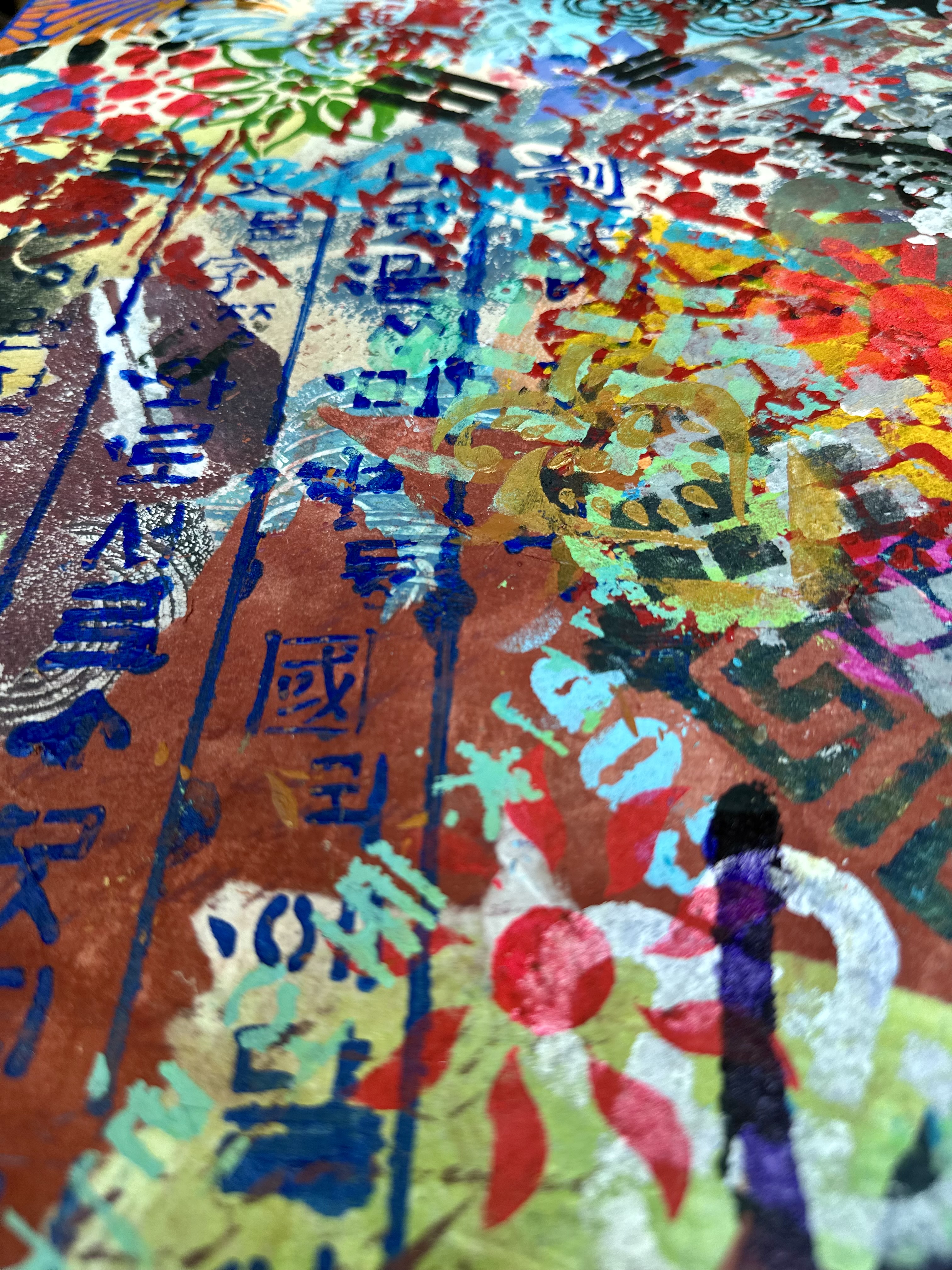 The artist's canvas records the instant when the frontier dissolves. The dyed hanji—sheets already committed—are placed against one another without the aggressive intensity of earlier work. The overlaps remain deliberate, but the desperation has left them. These papers coexist not because they are struggling but because they have already been acknowledged. The space they inhabit is no longer contested. Yet the work refuses nostalgia. Instead, it documents disorientation. The artist has spent a practice asking whether these forms could matter. Now they matter globally, commercially. The question that emerges is more troubling: Does "mattering" in the marketplace mean anything to the soul?