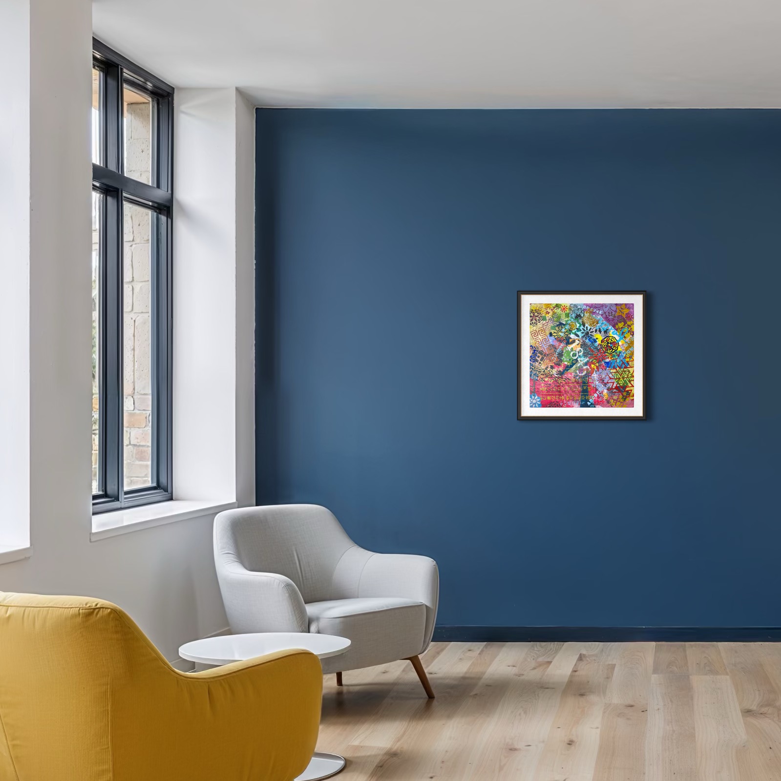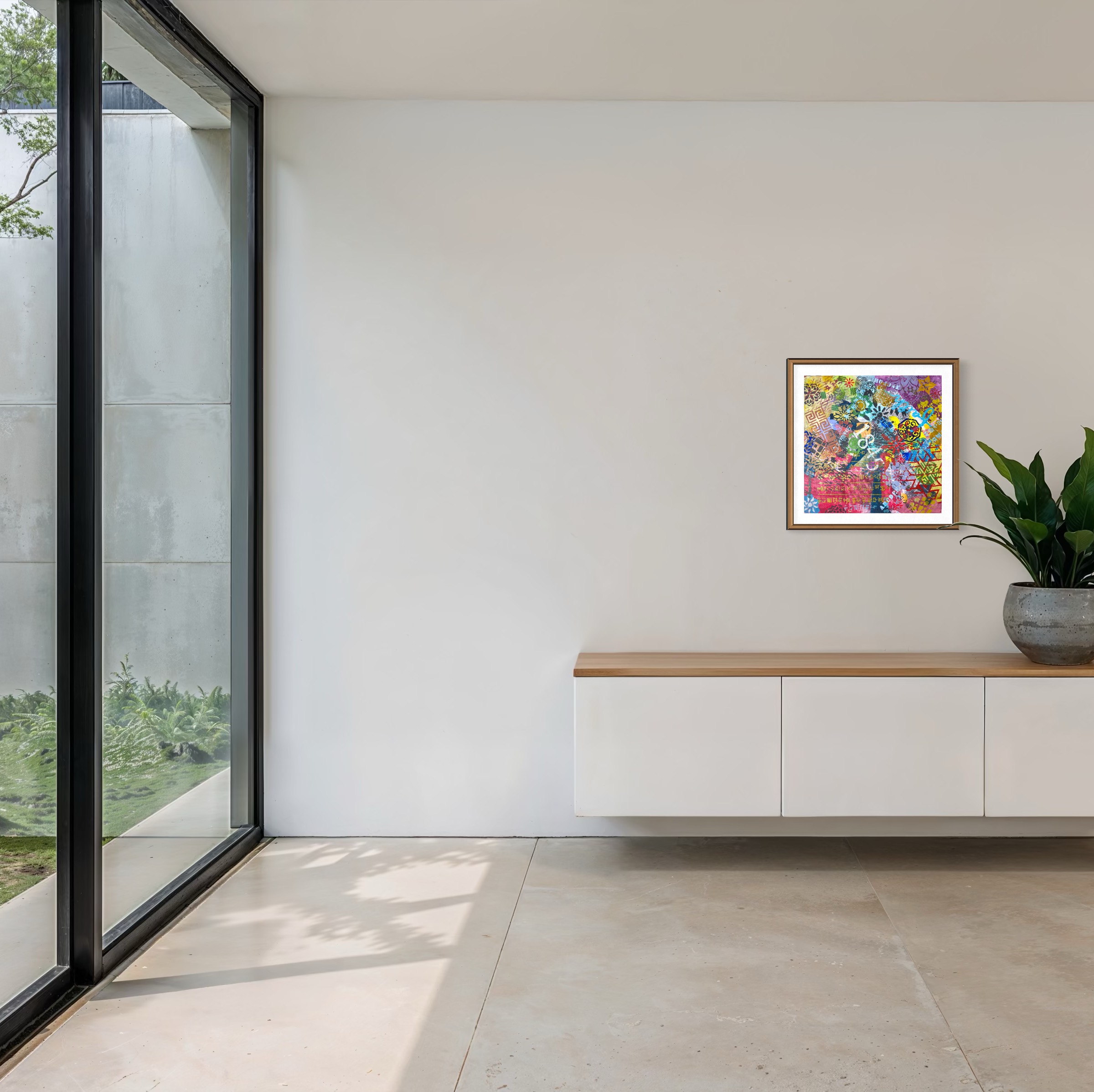 This is not neutrality. It is the dissolution of a particular kind of power—the power of prescribed viewing. In Western pictorial tradition, the rectangle carries the weight of perspective, horizon, and the standing body. The square erases that inheritance. It offers no preferred angle, no gravitational certainty. What remains is a field in which elements coexist without submitting to a single organizing principle.
