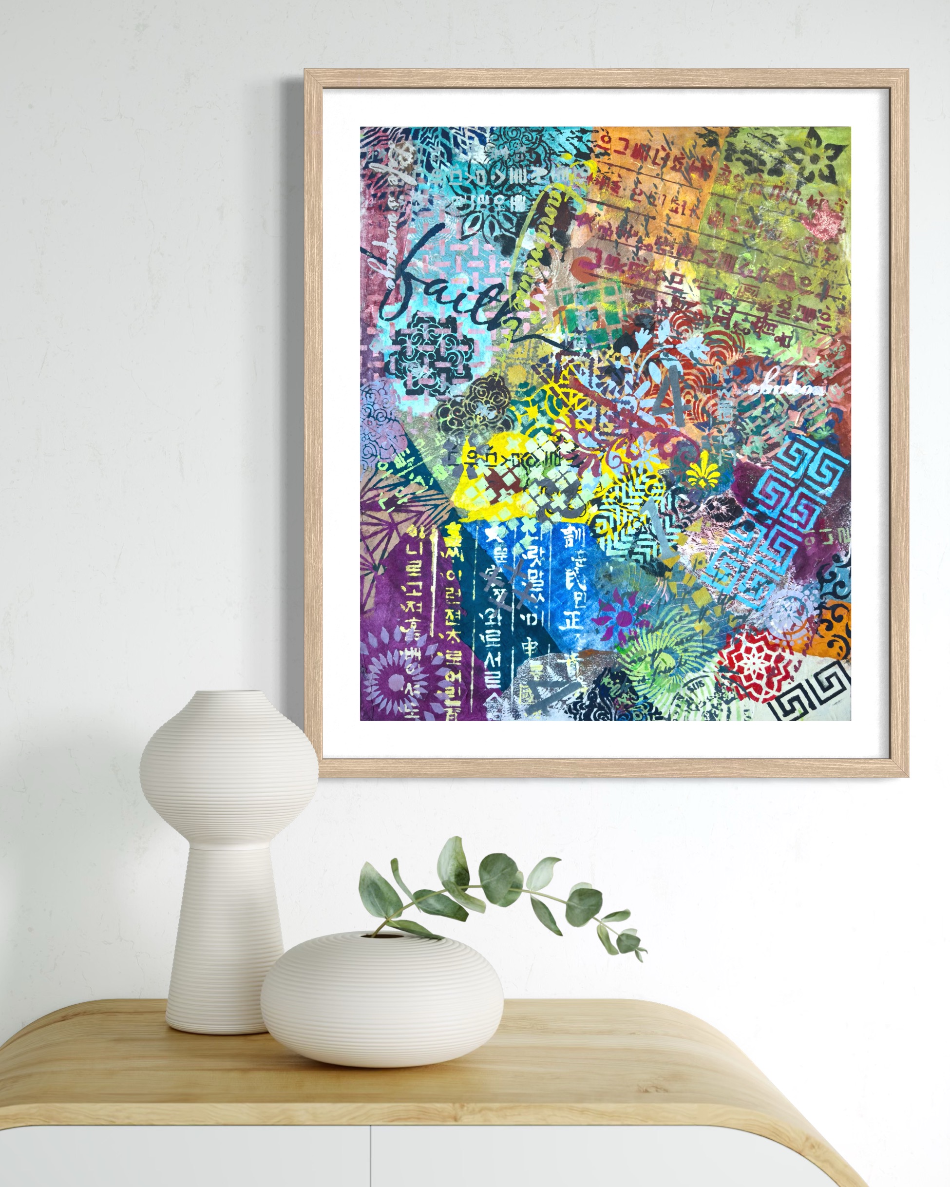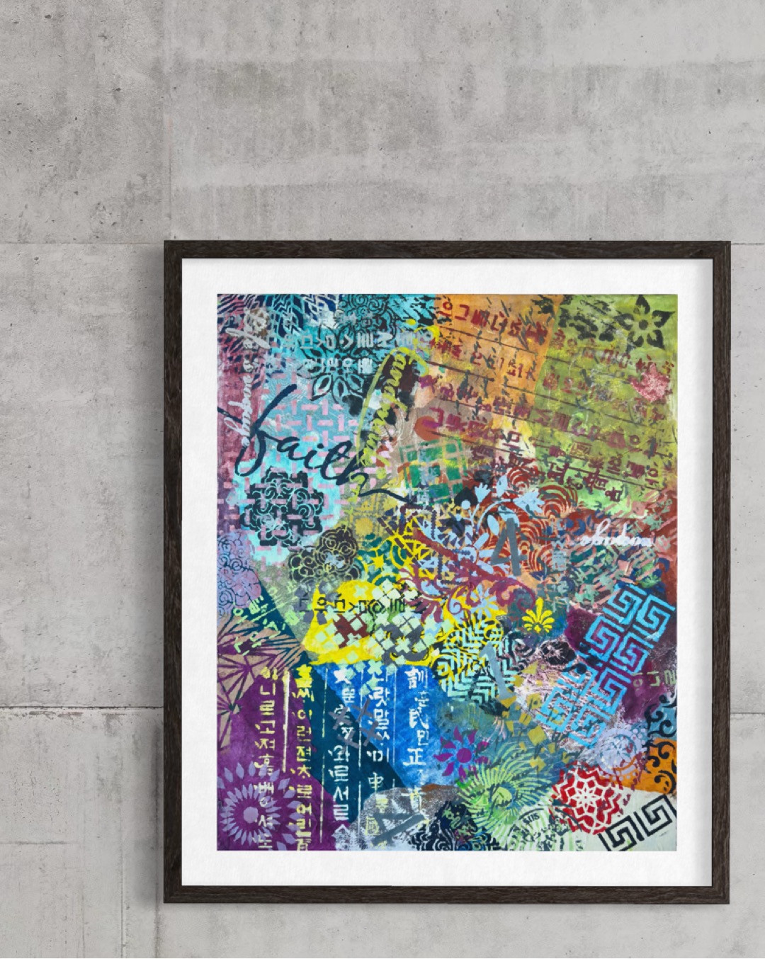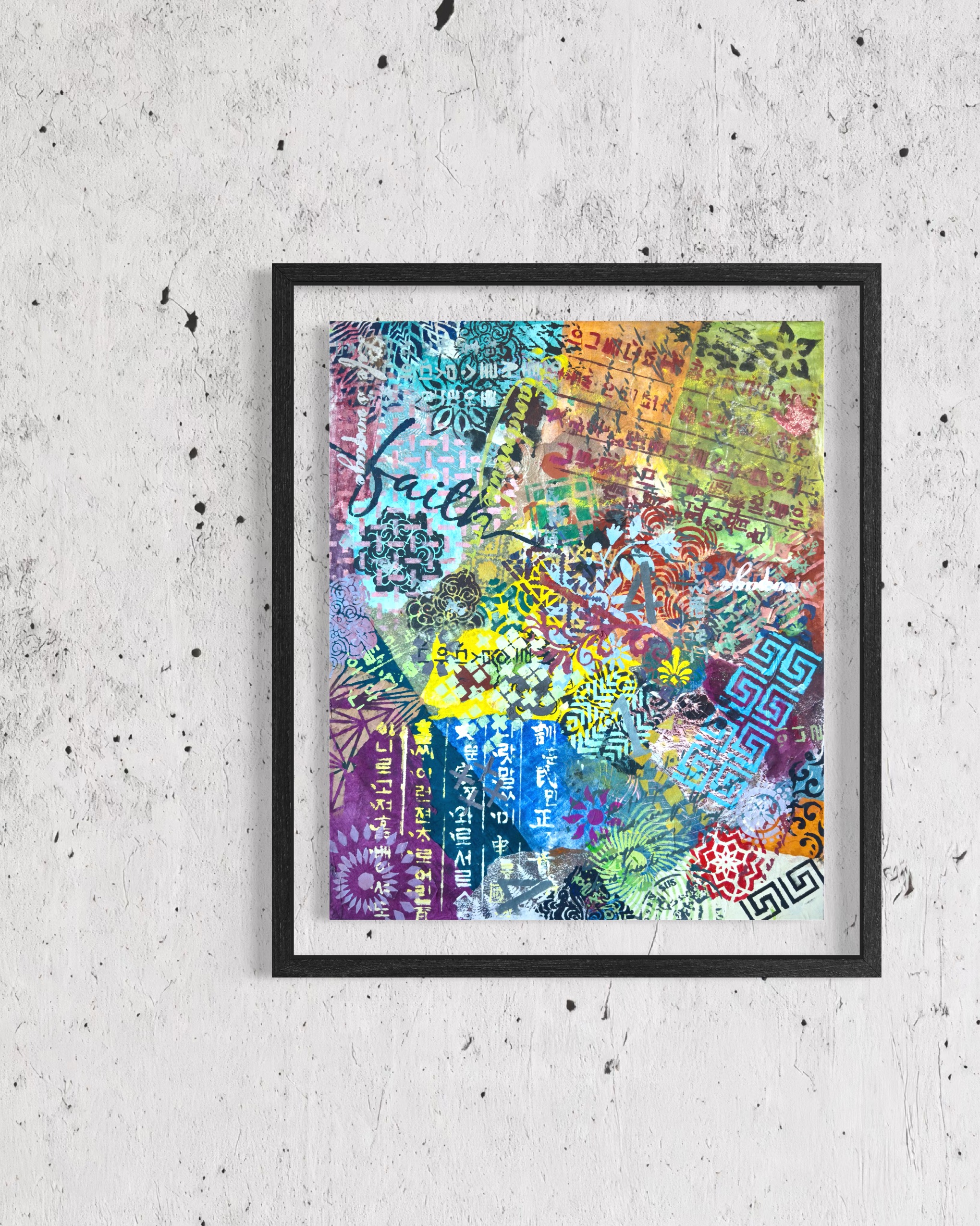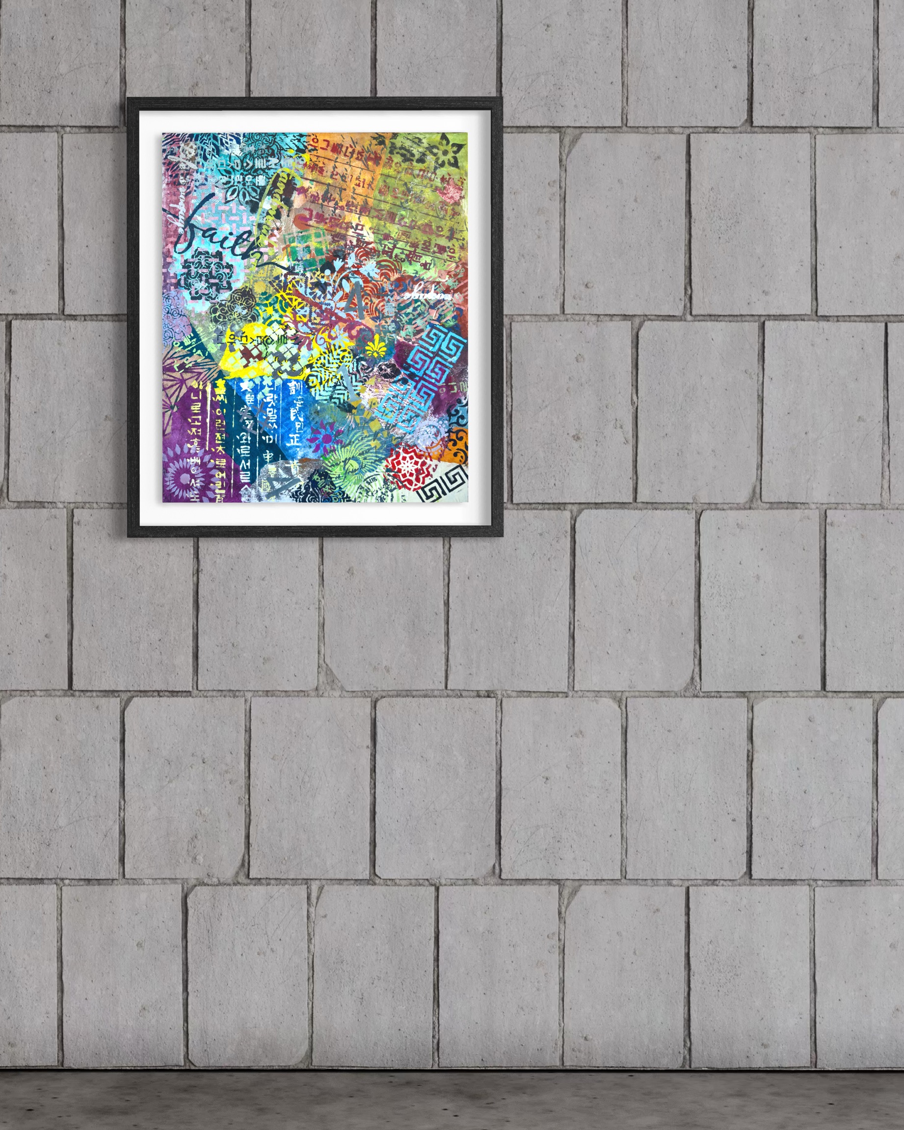 Forms arrive all at once—patterns collide, scripts cross, colors push forward without apology. This is not a composition; it is an overflow. What once held its edge begins to soften; what dissolves refuses to disappear.