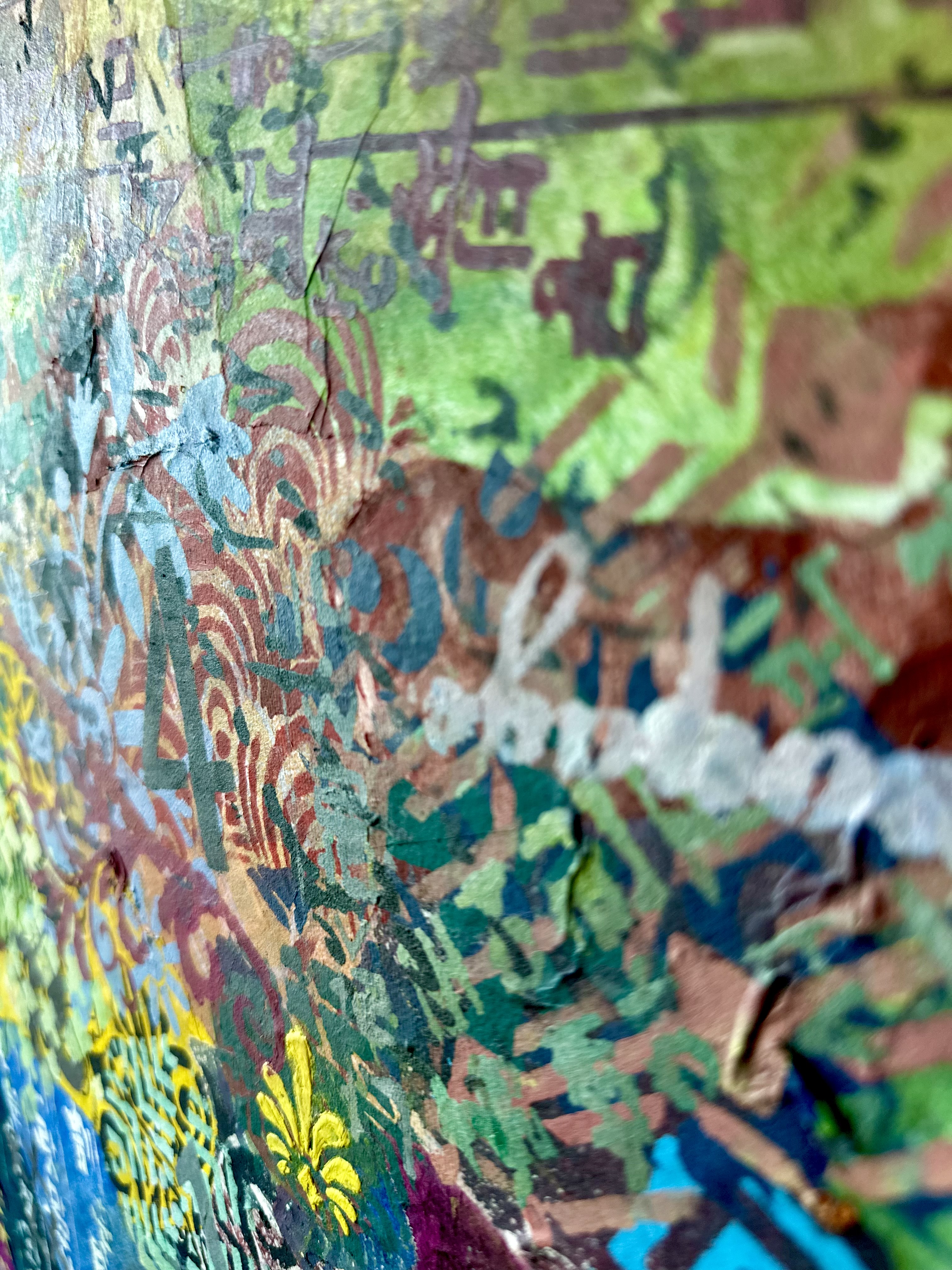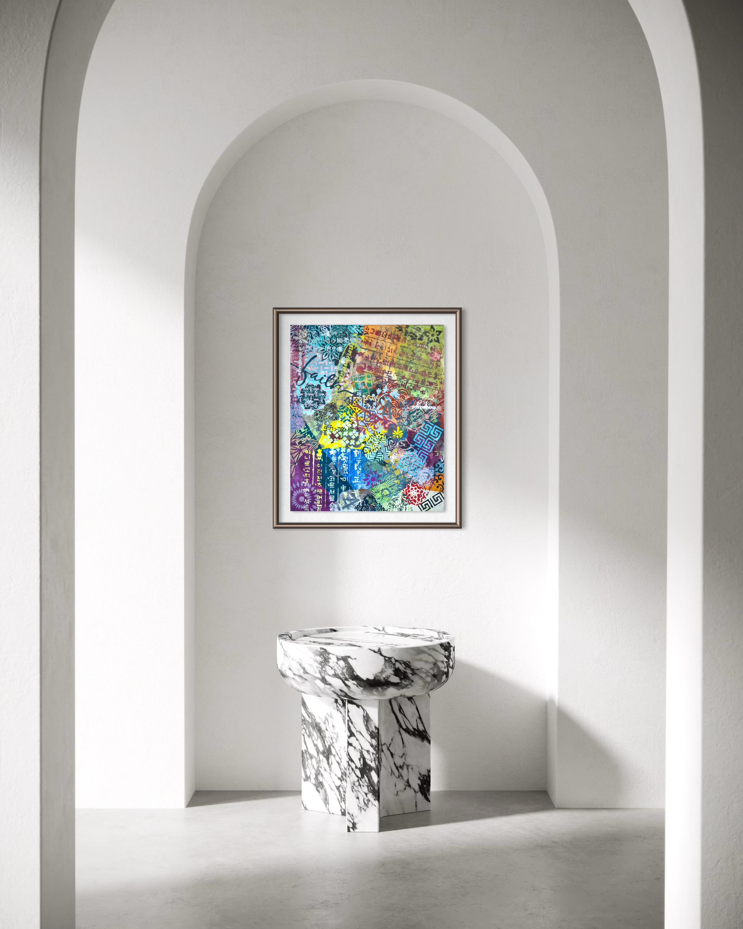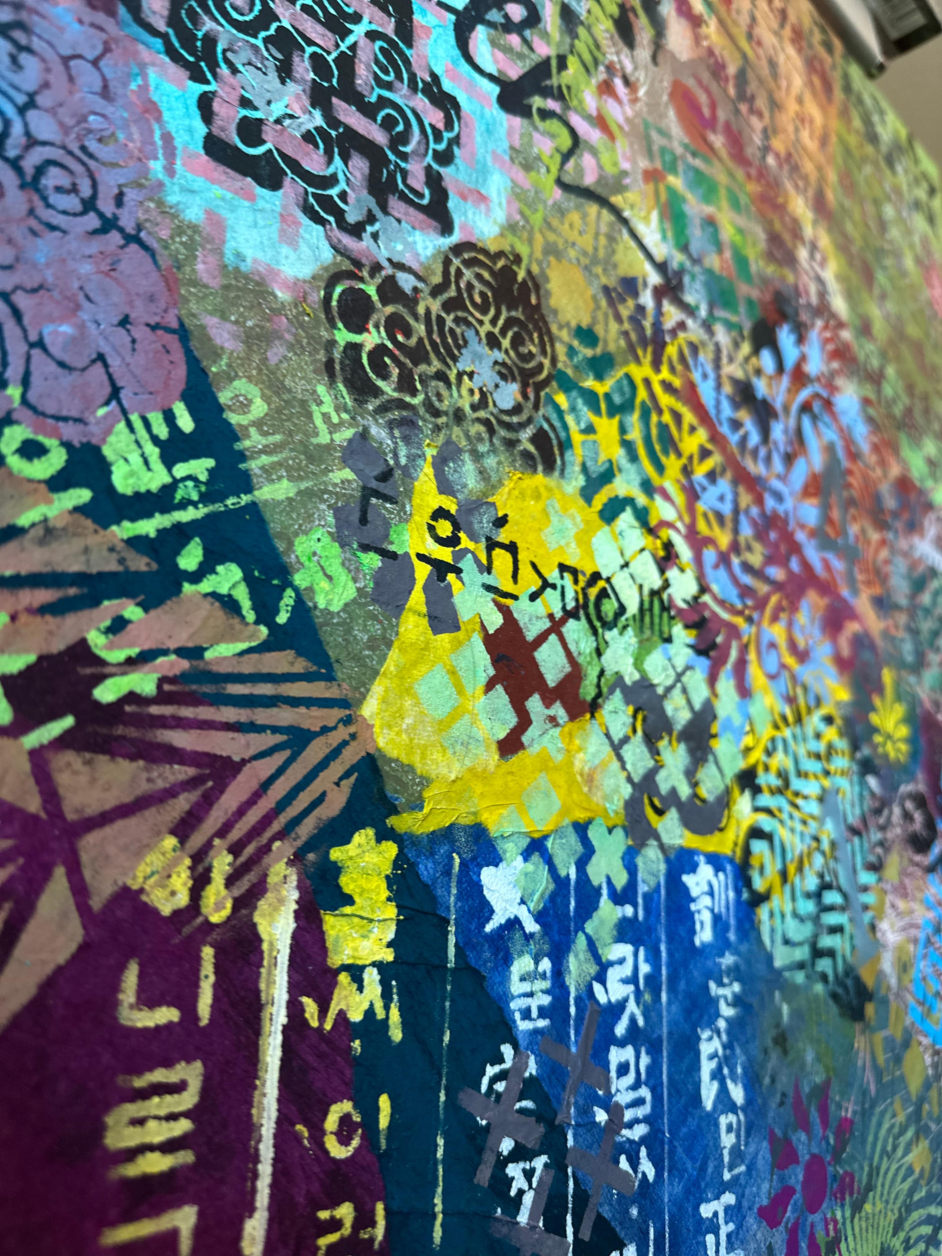 This endurance is ethical as much as aesthetic. In refusing to prioritize one system over another, the painting rejects the familiar narrative of fusion as progress. Difference is neither romanticized nor neutralized; it is allowed to persist unresolved. The work proposes that coexistence does not require consensus, and that visual excess need not be disciplined into coherence to be meaningful.