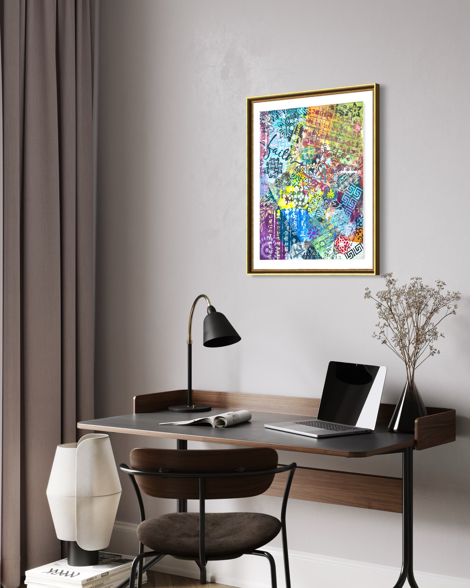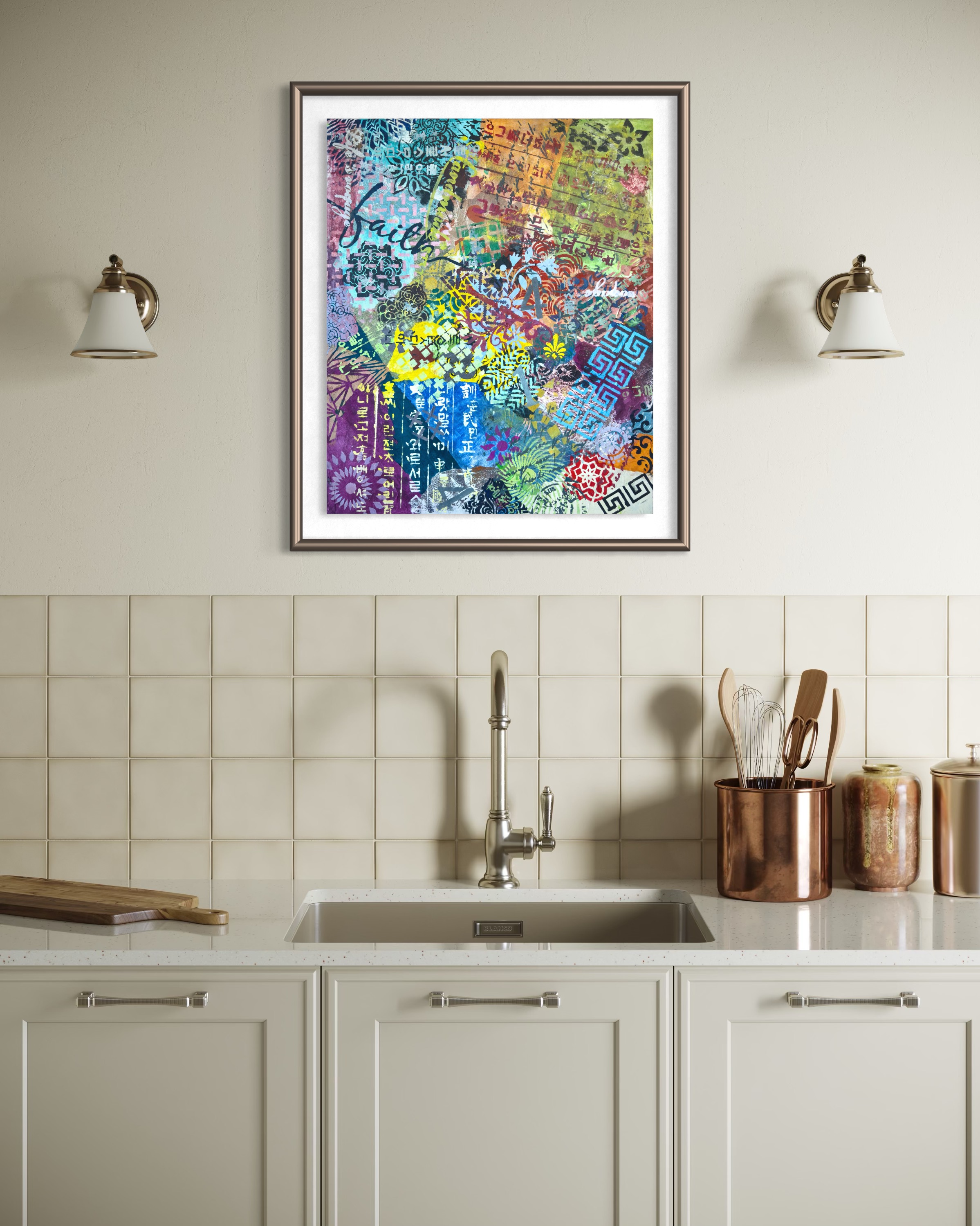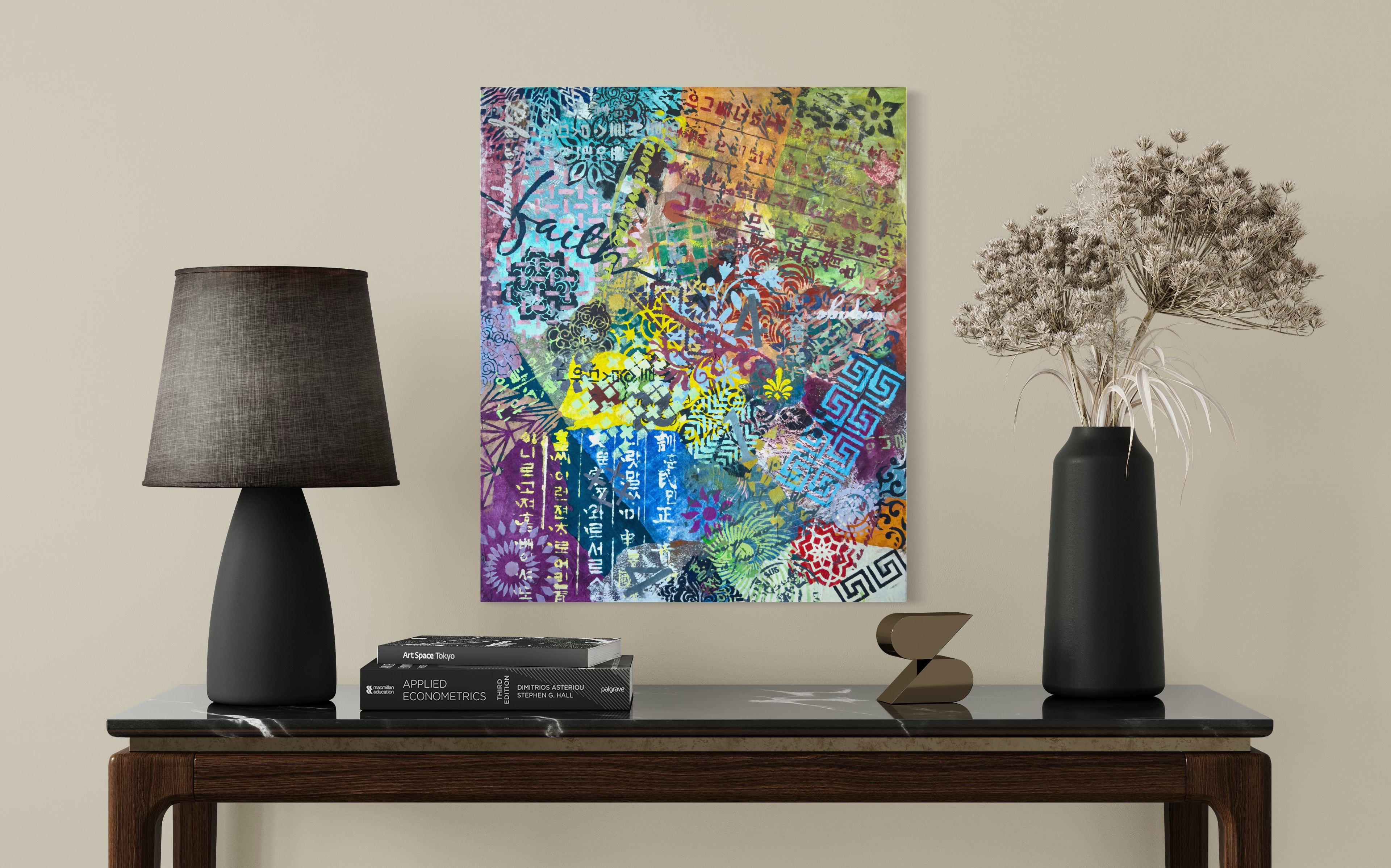 This endurance is ethical as much as aesthetic. In refusing to prioritize one system over another, the painting rejects the familiar narrative of fusion as progress. Difference is neither romanticized nor neutralized; it is allowed to persist unresolved. The work proposes that coexistence does not require consensus, and that visual excess need not be disciplined into coherence to be meaningful.