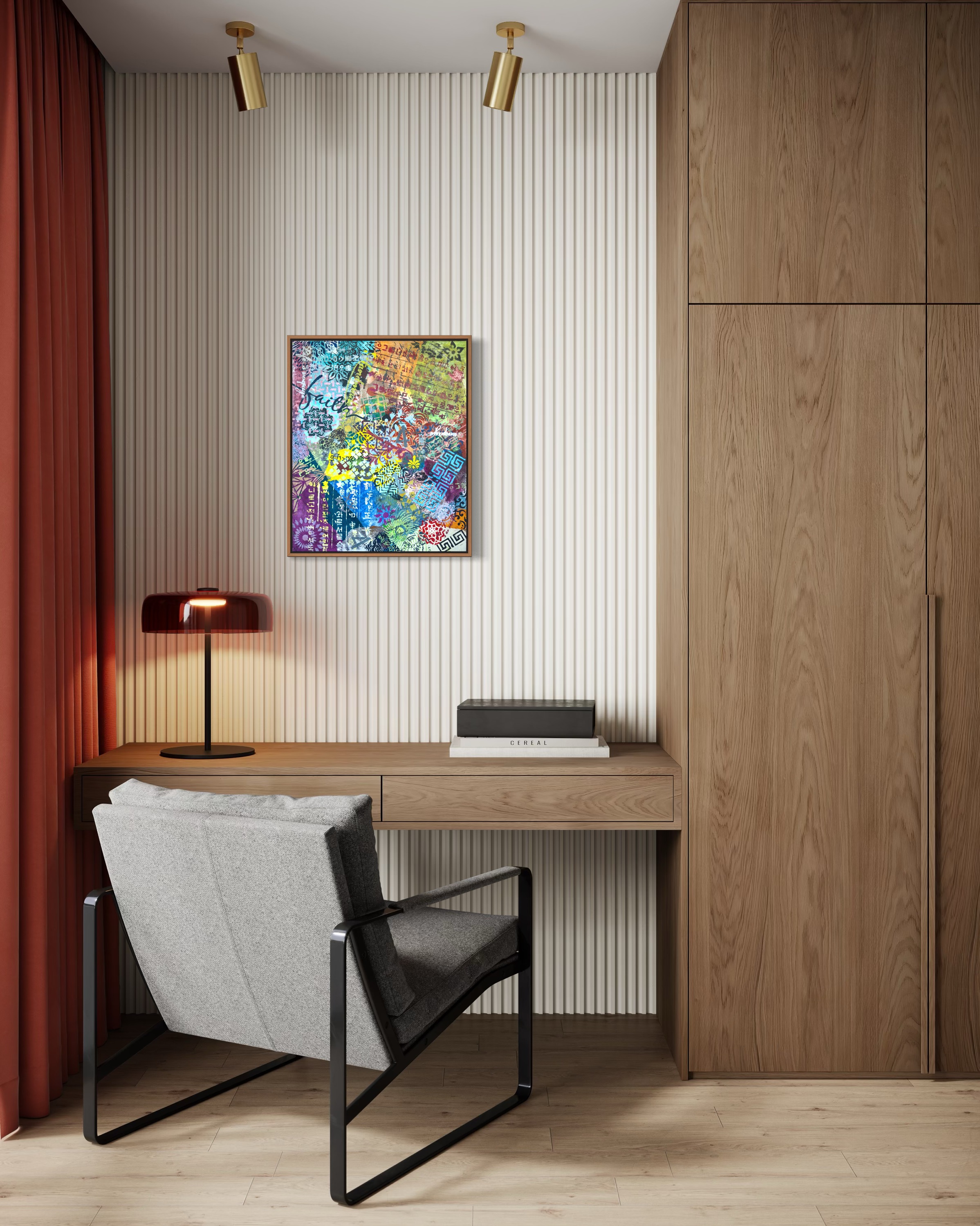 형태들은 동시에 도착한다. 문양은 충돌하고, 문자는 교차하며, 색은 사과 없이 전면으로 밀려온다. 이것은 구성이 아니라 넘침이다.